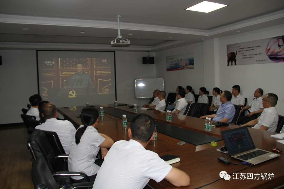 7月1日上午7時(shí)50分開始,江蘇四方鍋爐有限公司綜合樓301會(huì)議室,江蘇省政協(xié)委員、民建徐州市委銅山總支主委、江蘇四方鍋爐有限公司董事長(zhǎng)段緒強(qiáng)與公司黨支部黨員、高管及一線員工代表20多人一起,收看了慶祝中國共產(chǎn)黨成立100周年大會(huì)直播,全程聆聽了中共中央總書記、國家主席、中央軍委主席習(xí)近平發(fā)表的重要講話。起立致敬,由衷的掌聲,大家心情無比激動(dòng)。對(duì)擁有9500多萬黨員的世界第一大執(zhí)政黨--中國共產(chǎn)黨的崇敬心、自豪感和使命感油然而生。
