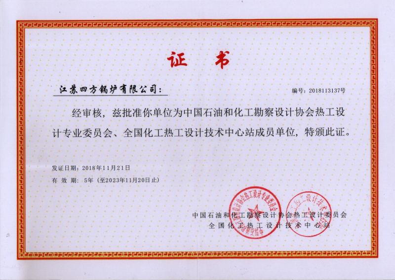 圖為江蘇四方鍋爐協(xié)會成員單位證書