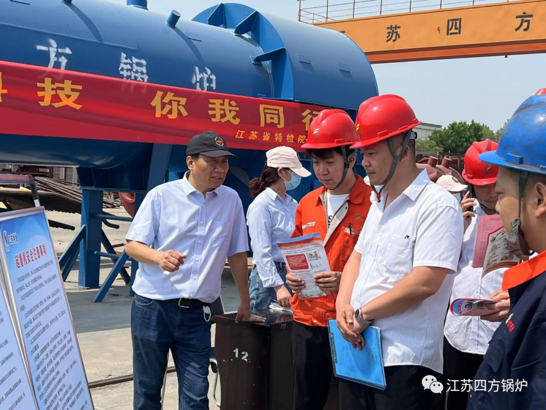 5月25日,江蘇省特檢院徐州分院“走近科學(xué),你我同行,起重機械知識科普講座”主題活動走進江蘇四方鍋爐有限公司。徐州分院副院長周洲、科技部主任鄭偉、 秦屹主任及駐廠監(jiān)檢張工等一行7人專家團隊參加活動。江蘇四方鍋爐有限公司總經(jīng)理葉楓,制造中心、品質(zhì)中心總監(jiān)及工程技術(shù)人員約20人參加培訓(xùn)學(xué)習(xí)、交流互動。
