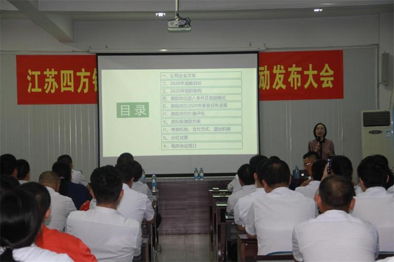 2020年7月19日,江蘇四方鍋爐有限公司股權(quán)激勵(lì)發(fā)布大會(huì)在江蘇徐州銅山華潤(rùn)工業(yè)園四方鍋爐公司總部隆重舉行。公司董事長(zhǎng)段緒強(qiáng)、總經(jīng)理葉楓,以及來自公司各中心、部門的全體管理人員、受激勵(lì)對(duì)象代表,和項(xiàng)目顧問華一世紀(jì)王悅羲、劉衛(wèi)平老師共同見證這一歷史性時(shí)刻。