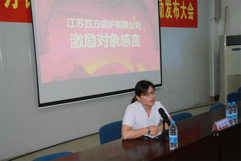 當(dāng)日上午9時(shí)30分,發(fā)布大會(huì)正式開始。四方鍋爐創(chuàng)始人段緒強(qiáng)董事長(zhǎng)致辭。段董對(duì)團(tuán)隊(duì)連日來的辛勤工作表示肯定與感謝,指出了公司實(shí)施內(nèi)部股權(quán)激勵(lì)的風(fēng)口機(jī)遇、優(yōu)勢(shì)條件及目標(biāo)信心,提出了建立和完善全員共同發(fā)力、助推企業(yè)二次發(fā)展的“動(dòng)車組”進(jìn)發(fā)機(jī)制,致力全員互勵(lì)共享的發(fā)展理念。段董表示,江蘇四方鍋爐將持續(xù)打造對(duì)企業(yè)全員有序開放的大平臺(tái),鼓勵(lì)、支持員工人人成為經(jīng)營(yíng)者,希望以此激發(fā)、深入強(qiáng)化企業(yè)全員的主人翁責(zé)任感,充分發(fā)揮全體員工的聰明才智,齊心協(xié)力經(jīng)營(yíng)好四方鍋爐這個(gè)大事業(yè),人人成為董經(jīng)營(yíng)、善管理、勤勞致富的成功者,為打造品質(zhì)生活、早日實(shí)現(xiàn)財(cái)富自由等信仰與價(jià)值追求賦予不竭的動(dòng)力。