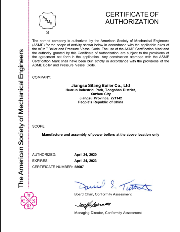 今日(2020年5月13日)下午,江蘇四方鍋爐如期收到來自美國工程師協(xié)會發(fā)來的ASME電子版證書(鍋爐S,容器U),標志著江蘇四方鍋爐繼2014年在國內(nèi)同行企業(yè)中較早通過ASME取證評審后,滿足取證、持證新的標準及要求,再次順利通過聯(lián)檢組評審。